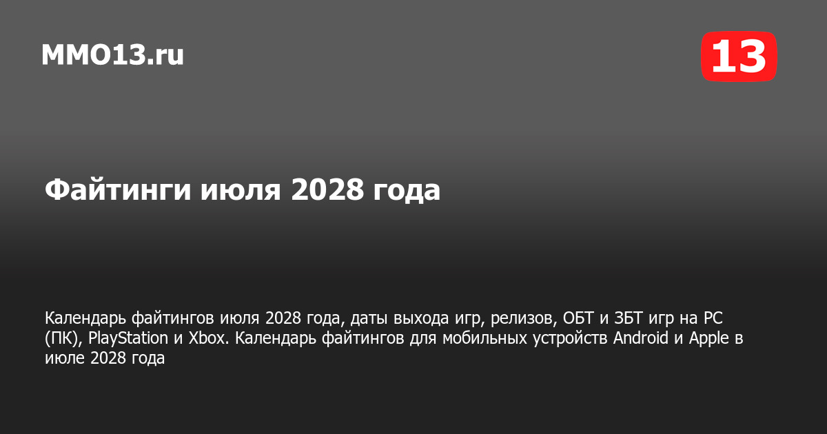 Календарь выхода файтингов июля 2028 года на PC (ПК), PlayStation и Xbox, мобильных устройствах Android и Apple и других платформах. Самые ожидаемые и интересные компьютерные, консольные и мобильные файтинги, а также даты выхода, релизы, ОБТ, ЗБТ и другие тесты в календаре файтингов на июль 2028 года.