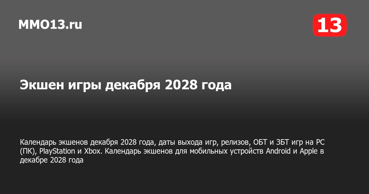 Календарь выхода экшенов июня 2028 года на PC (ПК), PlayStation и Xbox, мобильных устройствах Android и Apple и других платформах. Самые ожидаемые и интересные компьютерные, консольные и мобильные экшен игры, а также даты выхода, релизы, ОБТ, ЗБТ и другие тесты в календаре экшенов на июнь 2028 года.