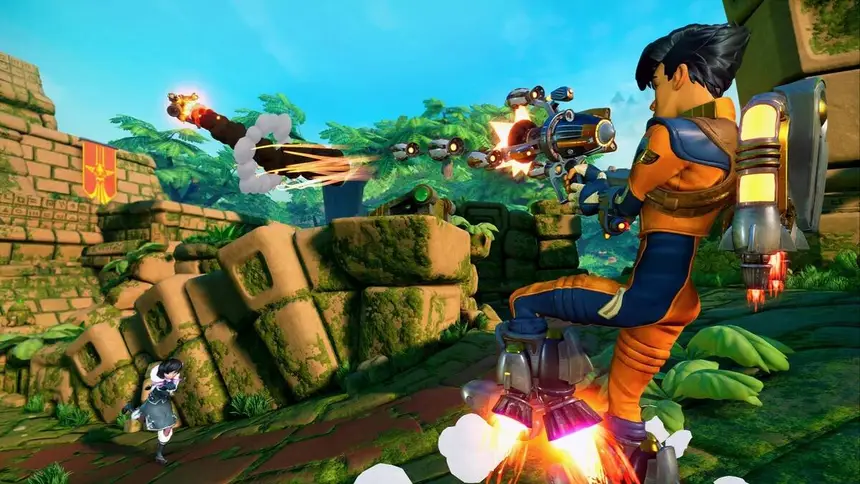 Впрочем, несмотря на казалось бы простой аркадный геймплей, играть в Rocket Arena не так уж и легко. Здесь нет хитсканового оружия, поэтому вам всегда нужно стрелять на опережение, подгадывая нужный момент. Бездумная стрельба может помочь, разве что, в случае удачи. Есть, конечно, отдельные герои, которыми играть намного легче, чем другими, хотя и они тоже вполне сбалансированы. Например, Плинк использует самонаводящиеся ракеты, но они наиболее эффективны только на близком расстоянии и наносят не так уж и много урона, а Топнотч имеет в своем арсенале способности, наносящие большой урон, но при этом он медленный и у него отсутствуют эскейпы. Также присутствует механика рокетджампов, которую также необходимо часто использовать.