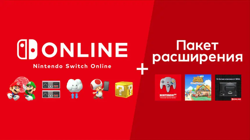 Что же такое «Nintendo Switch Online + Пакет расширения» и для чего оно нужно? Как и полагается для всех консолей, подписка прежде всего предоставляет возможность играть в онлайне с друзьями, а также даёт некоторые бонусы в виде игр, дополнений и тому подобному. При помощи обычной подписки для Nintendo Switch пользователи могут играть в классические игры NES и Super NES. Расширенная же версия предлагает еще несколько дополнительных предложений: классические игры Nintendo 64, SEGA 16-бит и платное дополнение — на данный момент это недавно вышедшее DLC для Animal Crossing: New Horizon.