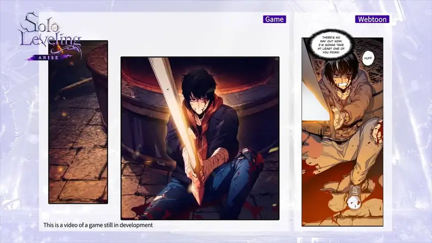 Netmarble опубликовала небольшой ролик со сравнением внутриигрового ролика из мобильного ролевого экшена Solo Leveling: ARISE и манхвы «Поднятие уровня в одиночку». Вы можете увидеть, как будет выглядеть в действии знаменитая сцена, в которой главный герой остается в одиночку против сильнейших титанов, перебивших почти всю его команду.