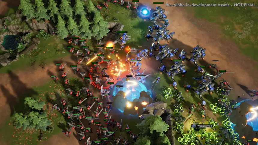 В представленном ролике мы можем впервые увидеть кадры игрового процесса, сопровождающиеся комментариями разработчиков. Нам показали как строительство различных сооружений, так и сражения между двумя сторонами. Каждый юнит, как полагается, обладает уникальными особенностями — к примеру, один может проходить через лес, а другой способен прорубить путь через него для остальной команды.