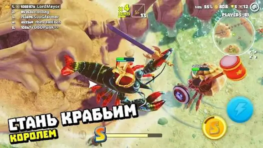 King of Crabs — это многопользовательский экшен, в котором игроки управляют крабами и сражаются друг с другом на огромном островном мире. В игре представлено более 20 видов крабов, каждый из которых имеет свои уникальные способности и характеристики. Игроки могут собирать крабов, улучшать их и настраивать их внешний вид. Основной режим — это PvP-битва, в которой до 100 игроков сражаются друг с другом на одной карте. Главная цель заключается в том, чтобы уничтожить как можно больше соперников и остаться последним выжившим. Помимо этого, в игре есть PvE-режим, в котором игроки должны отбиваться от волн врагов.