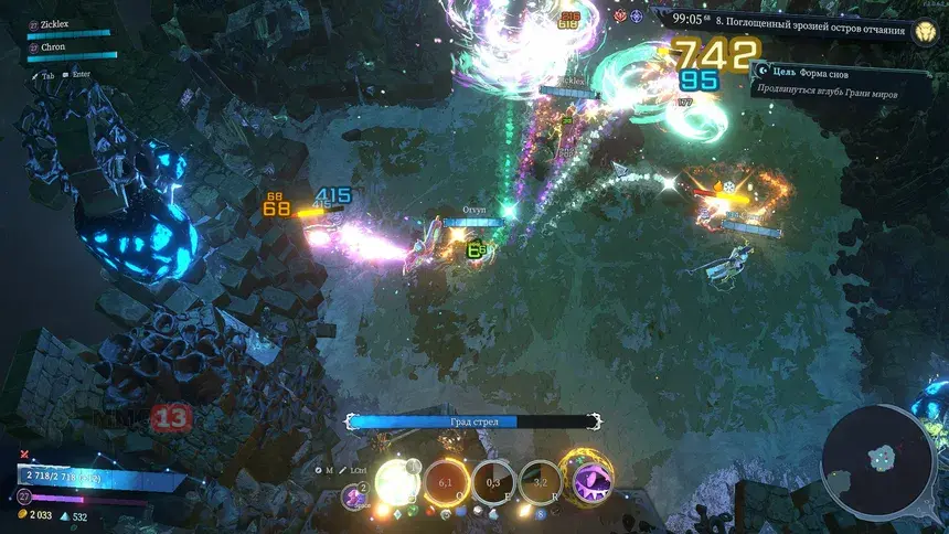 Shape of Dreams позиционируется как смесь MOBA и «рогалика», но это описание лишь частично отражает суть. От MOBA здесь выбор персонажей с уникальными способностями и опциональное управление при помощи мыши (хотя мне же режим через WASD показался гораздо удобнее). В остальном это классический Roguelite: процедурная генерация, прокачка, перманентная смерть и бесконечные забеги за идеальным билдом. Сюжет минималистичен: вы — один из восьми Путешественников, исследующих мир сновидений, где победа над Первым Сновидцем исполняет заветное желание. История здесь — скорее фон, чем движущая сила, но вряд ли вы пришли сюда ради нее.