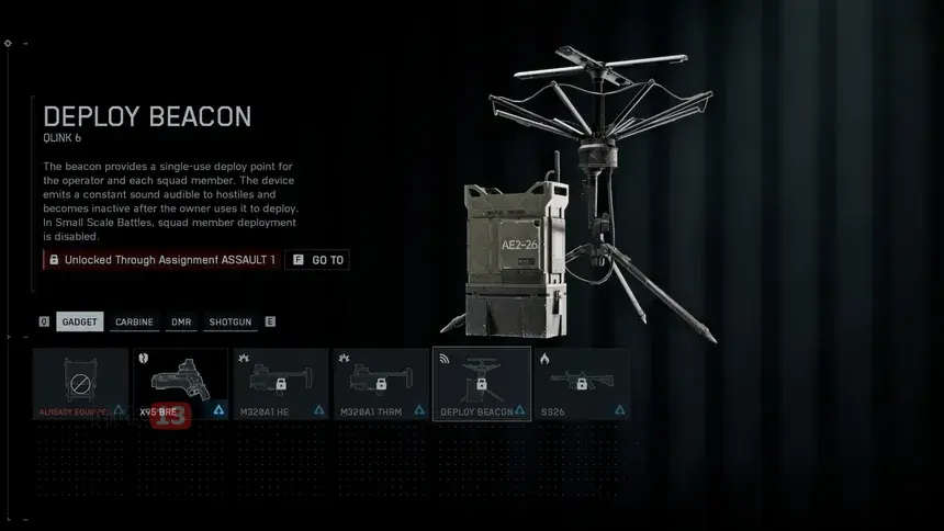 Эта снайперская раскладка использует класс Штурмовика, чтобы задействовать его гаджет «Маяк высадки», позволяя вам проникать в тыл врага и обеспечивать стратегические точки высадки для вашего отряда.