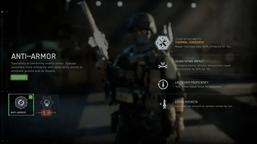 Наконец, ветка развития «Противотанковая» еще больше усиливает ваши возможности по борьбе с техникой. У вас будет увеличенная скорость перезарядки всех гранатометов, и вы будете носить две дополнительные ракеты в запасе. Любая техника, которой вы нанесете урон, также будет получать меньше лечения от вражеских инженеров, что даст вам время перезарядить гранатомет или добить танки противотанковыми гранатами.