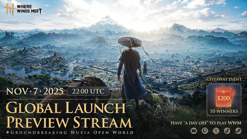 Разработчики приключенческого ролевого экшена Where Winds Meet анонсировали специальную прямую трансляцию, посвященную предстоящему глобальному релизу. Стрим начнется в ночь с 7 по н 8 ноября, в 01:00 по московскому времени, и будет проходить на официальных страницах YouTube, Twitch, X, TikTok и Steam.