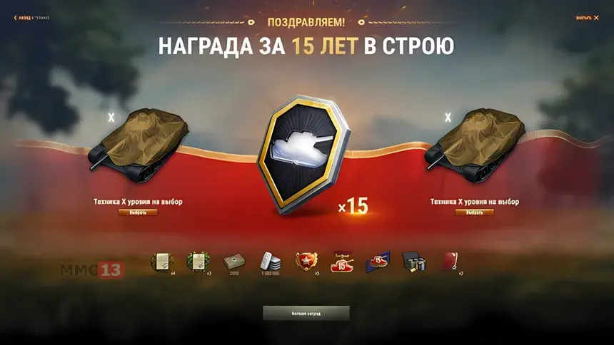 - Почетная нашивка юбиляра, доступная танкистам, которые отметили 5, 10 или 15 лет в проекте.