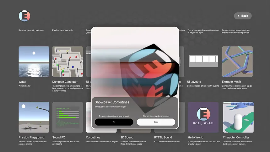 На платформе разрешается не только публиковать собственные проекты, но и играть в игры, созданные другими пользователями. В разделе «Шаблоны» доступны демоверсии простых мини-игр разных жанров, которые можно клонировать одним нажатием кнопки, используя как основу для создания своего творения.