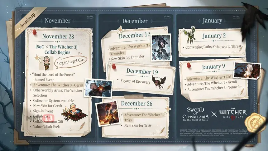 Компания XD Games официально объявила о начале масштабного кроссовер-события в тактической RPG Sword of Convallaria. Коллаборация с игрой The Witcher 3: Wild Hunt продлится до 22 января 2026 года и позволит получить Геральта из Ривии, Йеннифэр из Венгерберга, Трисс Меригольд и Цири. Причем последняя доступна бесплатно просто за вход в игру.