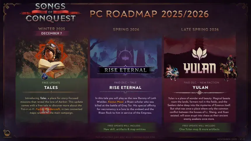 Студия Lavapotion опубликовала свежую дорожную карту Songs of Conquest для ПК-версии игры. Обновлённый план охватывает весь 2026 год и включает историю персонажа Mehry, крупное сюжетное DLC Rise Eternal, а также первые подробности о новой фракции Yulan.