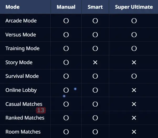 Схема Super Ultimate обеспечивает максимальную автоматизацию. Движение, атаки, броски и комбо выполняются автоматически простым удержанием кнопки атаки. Персонаж даже сам блокирует входящие удары, когда игрок не предпринимает никаких действий. Этот режим разработан специально для новичков, а также для игры с друзьями и семьей, поэтому его нельзя использовать в онлайн-сражениях.