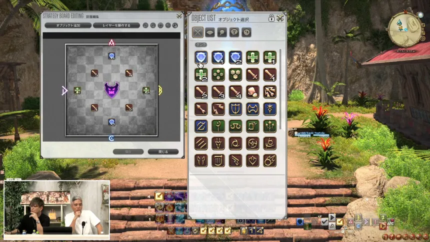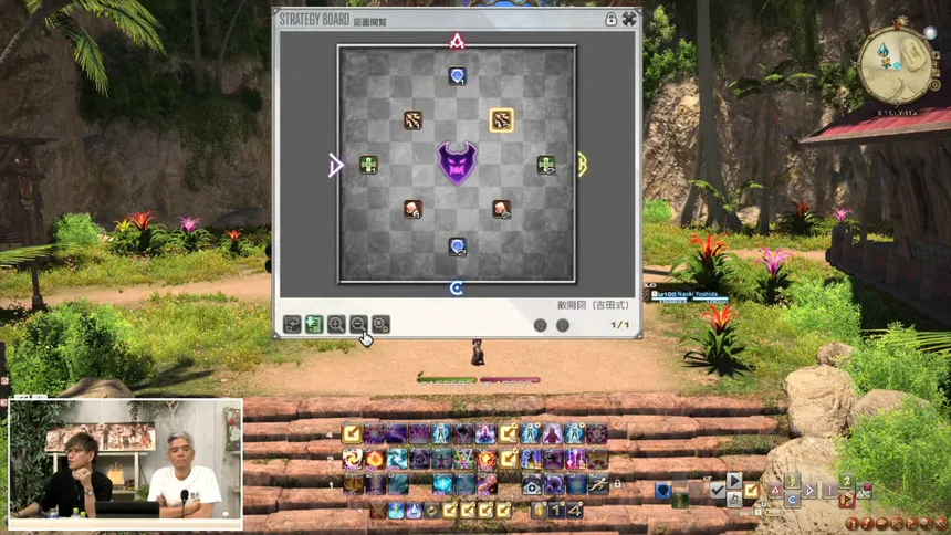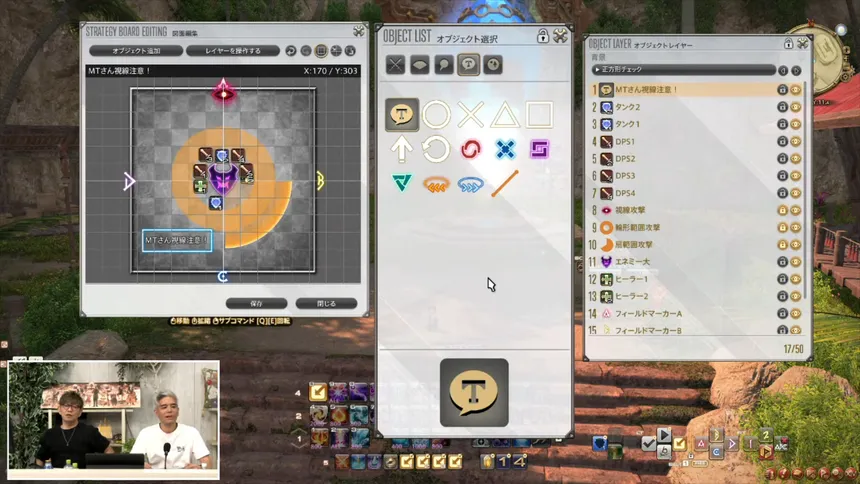 На доску также можно добавлять текст. В качестве примера Ёсида написал: «МТ-сан, смотри, куда идешь!» (MT — Main Tank, основной танк). При необходимости можно переключать иконки для обозначения разных типов DPS.
