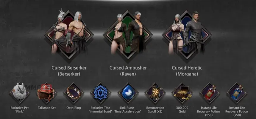 В качестве награды за предварительную регистрацию вы можете получить костюмы для трех классов, эксклюзивного пета, набор талисманов, кольцо, титул, руну, 5 свитков воскрешения, 300 тысяч золотых, 50 зелий здоровья и 50 зелий маны.