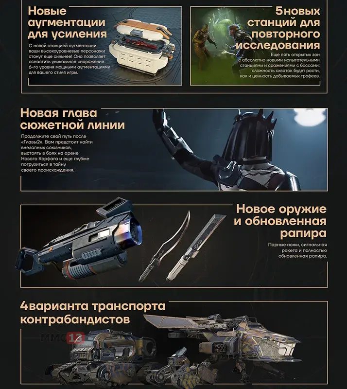 Также были расширены ранги обеих фракций и добавлены две взаимосвязанные системы развития: специализация и аугментации. На обзорной карте появились новые локации, включая уникальные испытательные станции с возможностью повторного прохождения, адаптируемой сложностью и ценными наградами.
