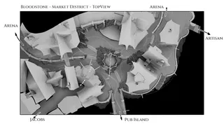 Отдельно можно выделить несколько черно-белых изображений показывающих рыночный квартал с различными магазинами и лавками, а так же заведением The Phoenix Feather.