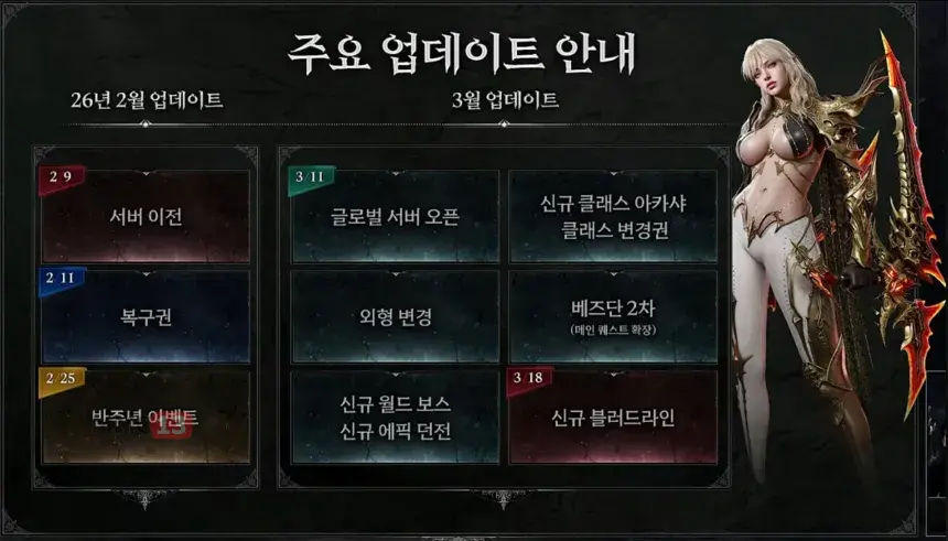 В марте игроков ждёт новый класс ближнего боя, новые области игрового мира, сюжетные задания, эпические подземелья, боссы и многое другое. Также разработчики пообещали пристально следить за балансом классов, корректировать его и усилить борьбу с ботами, в том числе с использованием ИИ-технологий.