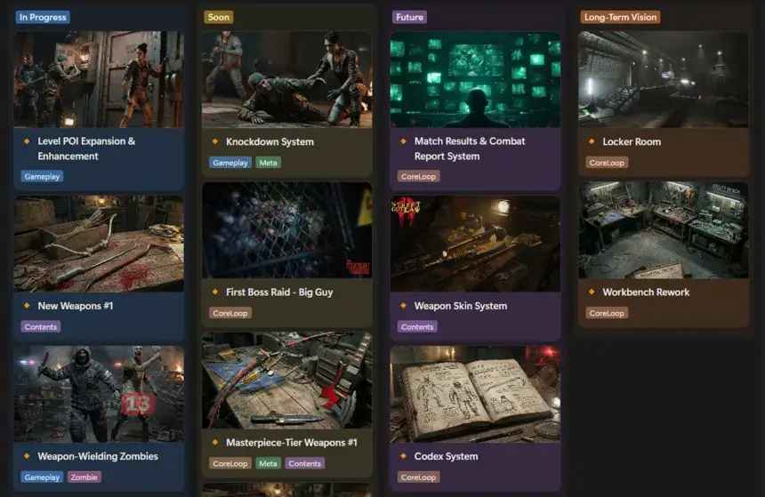 Уже в ближайшие месяцы ожидаются регулярные обновления с изменениями и улучшениями, а примерно через три месяца запланирован крупный апдейт, который должен перевести The Midnight Walkers в следующую фазу развития. Также студия опубликовала дорожную карту развития проекта до второго квартала 2026 года, в которой можно заметить новое оружие и противников, первый рейд на босса, Twitch Drops, личное настраиваемое помещение, куда можно приглашать других игроков, и многое другое.