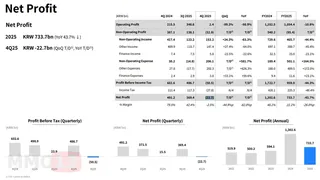 Что касается итогов за год, то выручка составила рекордные 3,326 триллиона вон (~2,272 миллиарда долларов), что на 22,8% больше, чем в 2024 году. Однако прибыль компании снизилась на 43,7% до 743 миллиардов вон (~507,478 миллиона долларов). Главной причиной падения прибыли стали возросшие на 48,8% расходы на ведение бизнеса.
