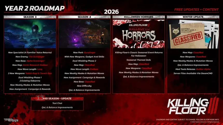 Спустя полгода после релиза кооперативного шутера от первого лица Killing Floor 3 студия Tripwire Interactive подвела первые итоги развития проекта и представила дорожную карту на 2026 год. Разработчики отметили, что за прошедшие месяцы им удалось реализовать ряд важных изменений, включая разделение специализаций и перков, а также добавление четырех новых видов вооружения и карт, среди которых тюрьма в джунглях и обновленный комплекс лабораторий. Главным достижением команда считает налаживание обратной связи с сообществом, что уже повлияло на список приоритетных задач.