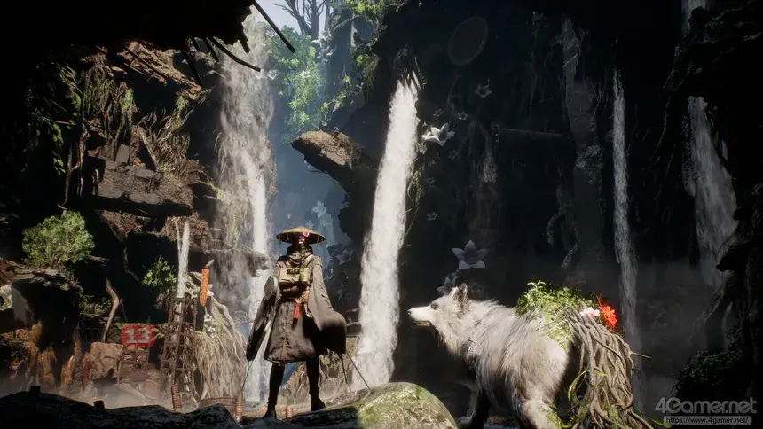 Мы стремились к структуре, где действия героев взаимно поддерживают друг друга. В бою, когда Эмма выполняет парирование, накапливаются очки. Используя их, можно отдать команду Ку для активации Техники цветения. Например, одна из техник Ку — выстрел растительным копьем, которое пронзает врага. Эмма может использовать это копье, чтобы совершить прыжок. Действия Эммы открывают возможности для Ку, а действия Ку, в свою очередь, позволяют Эмме продолжить атаку. Эта синергия и лежит в основе их взаимодействия.
