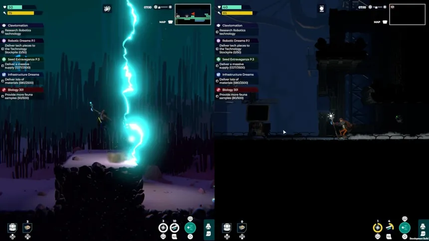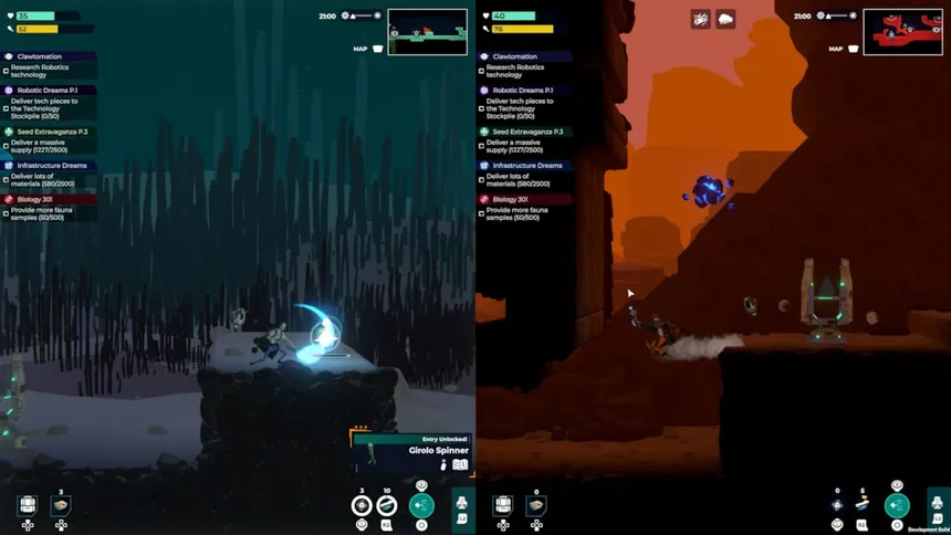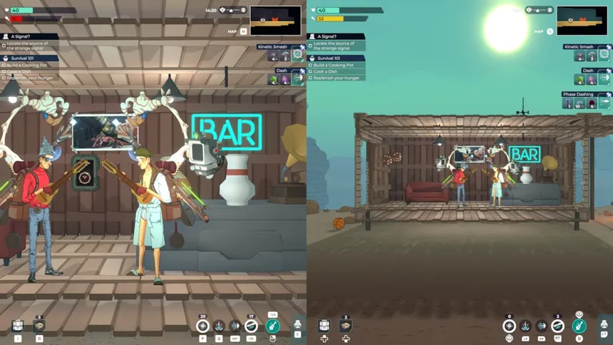 Система кооператива построена на принципах полной автономии участников. Игроки могут находиться в разных биомах, независимо друг от друга заниматься строительством или классификацией флоры и фауны, при этом прогресс сохраняется в рамках общего мира. Разработчики предусмотрели возможность подключения второго игрока к уже существующим сохранениям, что избавляет от необходимости начинать прогрессию с нуля. Для более удобного распределения ресурсов на базе появился специальный сейф, содержимое которого защищено от автоматических систем сбора.