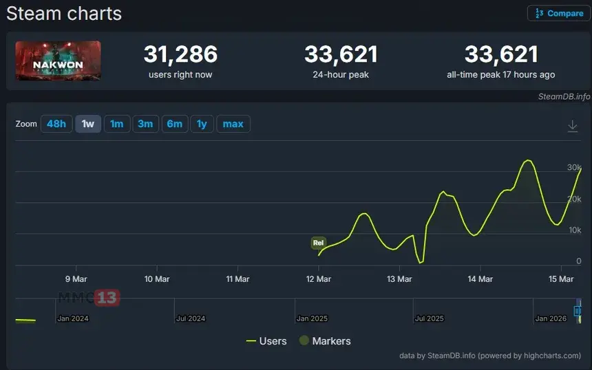 Компания Nexon недавно запустила закрытое бета-тестирование своего нового проекта Nakwon: Last Paradise, посвященного выживанию в условиях постапокалипсиса в Южной Корее. Несмотря на ограниченный доступ, игра уже продемонстрировала внушительные показатели, достигнув пикового онлайна в 33 000 человека. Напомним, что попасть на данный этап можно после подачи заявки на странице в Steam.