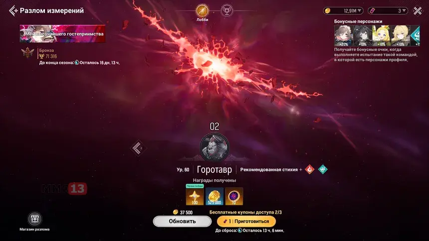 Кроме того, эндгейм-режим «Разлом измерений» здесь еще более требователен к наличию определенных персонажей, чем в подобных проектах. Мы уже привыкли к тому, что подобный режим делают с расчетом на ивентового персонажа, чтобы стимулировать игроков выбивать именно его, но здесь разработчики пошли еще дальше. Если у вас есть определенные персонажи, то вы будете получать хороший бонус к очкам, от которых и зависит ваша итоговая награда. Пока сложно сказать, как это скажется на Free-to-Play-игроках, но данный подход вызывает опасения.